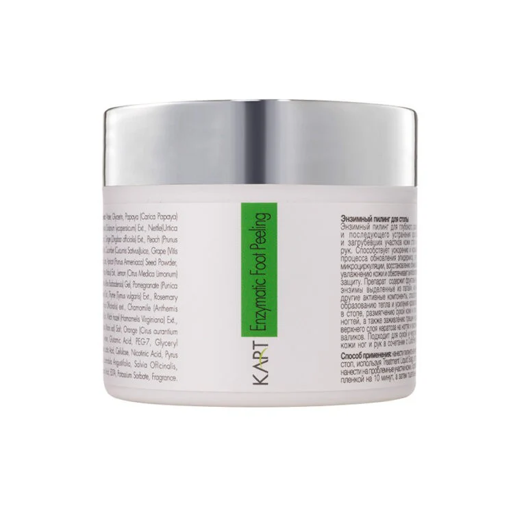 Enziminis pilingas normalizuoja ir pagreitna epidermio atsinaujinimo procesus.Tuo pačiu jis pagerina mikrocirkuliaciją,intensyviai drėkina odą,skatina gyjimo procesą ir sukuria antibakterinę apsaugą. Šis produktas turi unikalų natūralių aktyvių komponentų kompleksą,sudarytą iš vaisių rūgščių ir fermentų,kuris ne tik „perkrauna” odos biologinius procesus,bet ir tarnauja kaip odos apsauga dirbant su stipriais keratolitikais.Tinka sergant cukriniu diabetu!